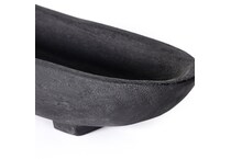 An elongated shape with low block feet carved from reclaimed wood remnants. Great to style on a dining table, buffet, or kitchen counter to hold produce.