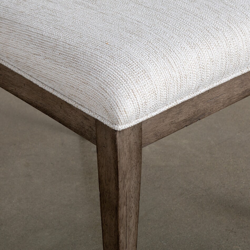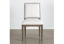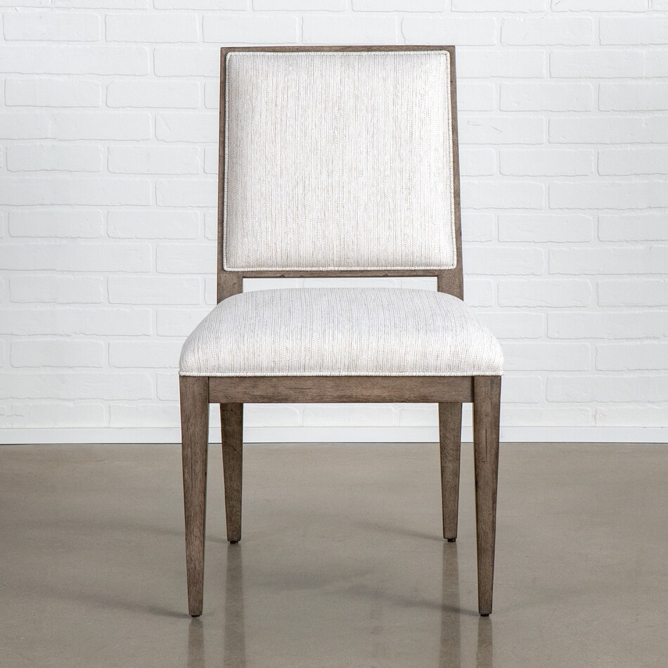 Tailored and timeless, the Ada Side Chair has a comfortable upholstered seat and back in the neutral performance fabric Remington Porcelain with welt trim. The crisp wood frame is finished in the soft smoked gray Mink color.