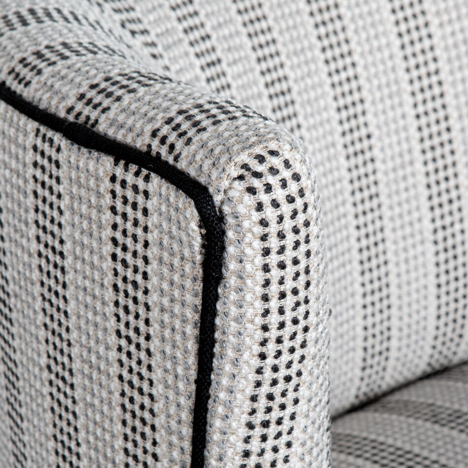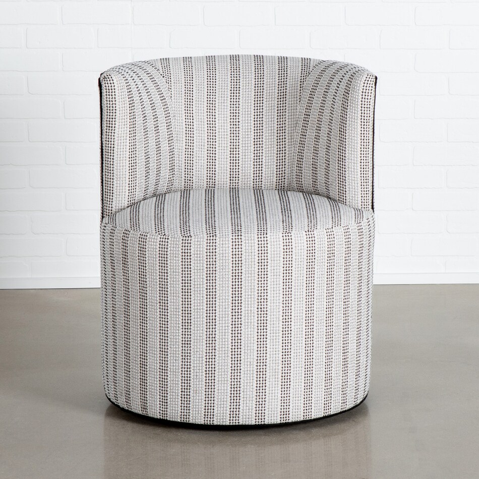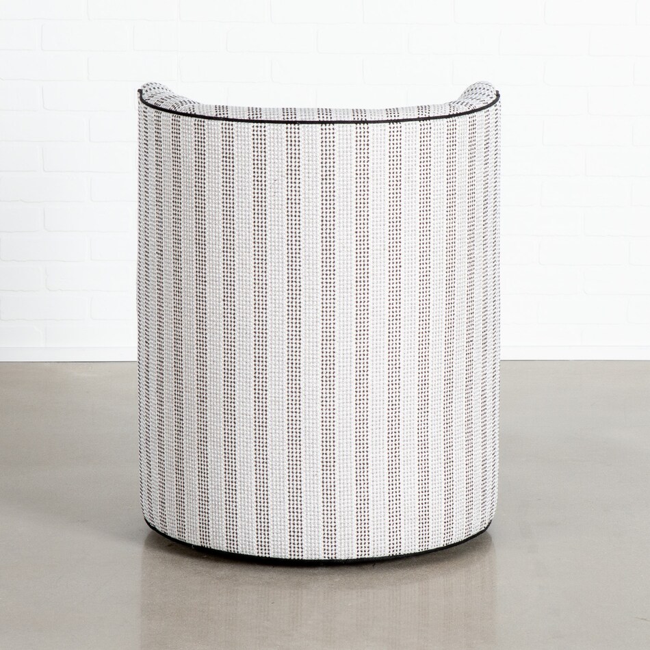 Stunning from every angle. The Shadow Chair embraces curves, comfort, and movement. Perfect as an accent chair or around your dining table, Shadow showcases a barrel silhouette that wraps you in comfort as you take a moment to relax or mingle with guests. Its highly textured, woven stripe fabric is created with neat rows of irregular tufts of boucle yarn. Hidden casters allow you to move wherever you please with a simple, sophisticated glide.