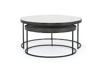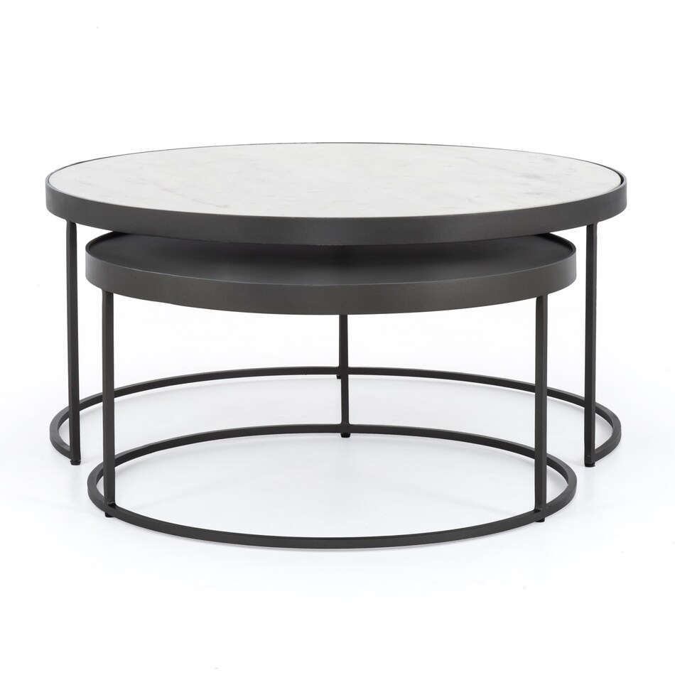 Art and functionality come together in the form of evocative, upcycled furnishings in our Evelyn Nesting Coffee Table. Stacked and structured, slim iron lends edge to the sophistication of polished white marble. Its nesting feature adds compact functionality and modern, adaptable appeal.
