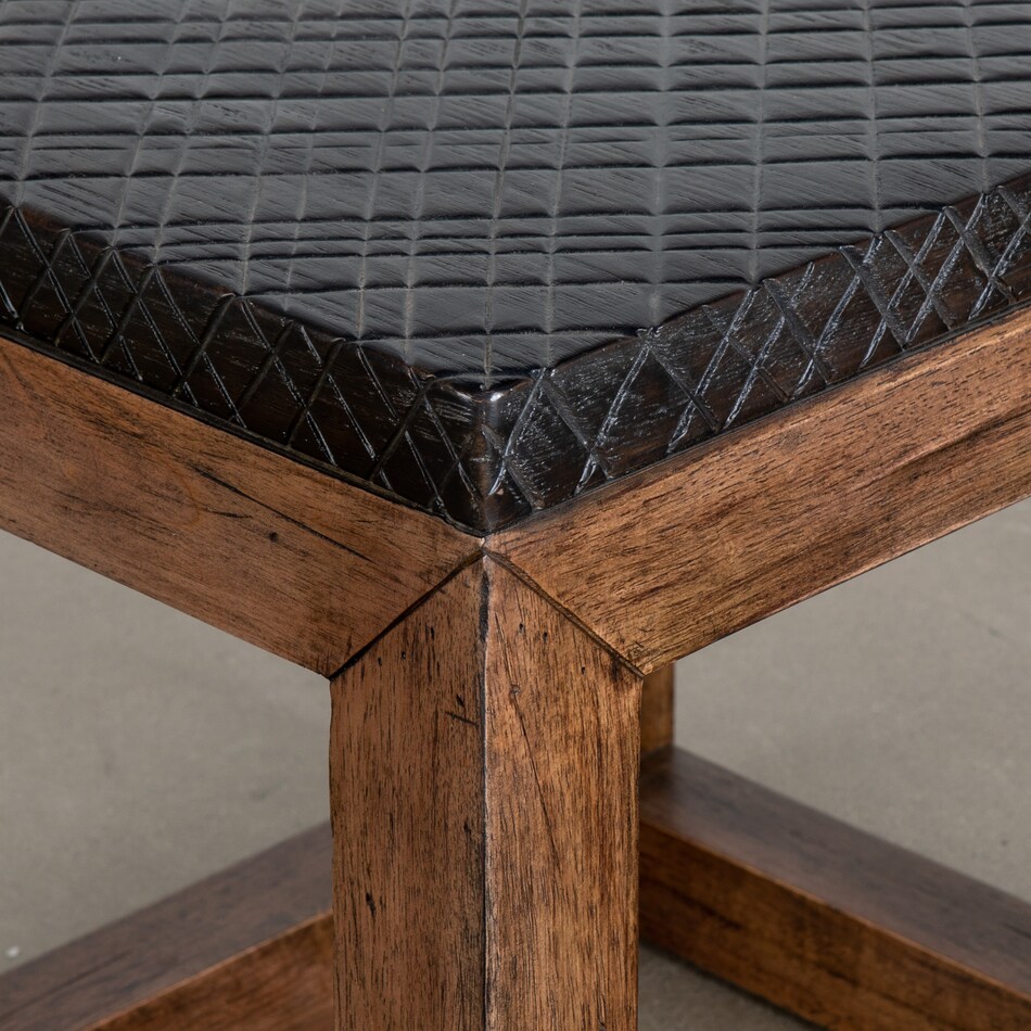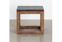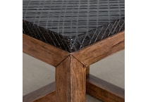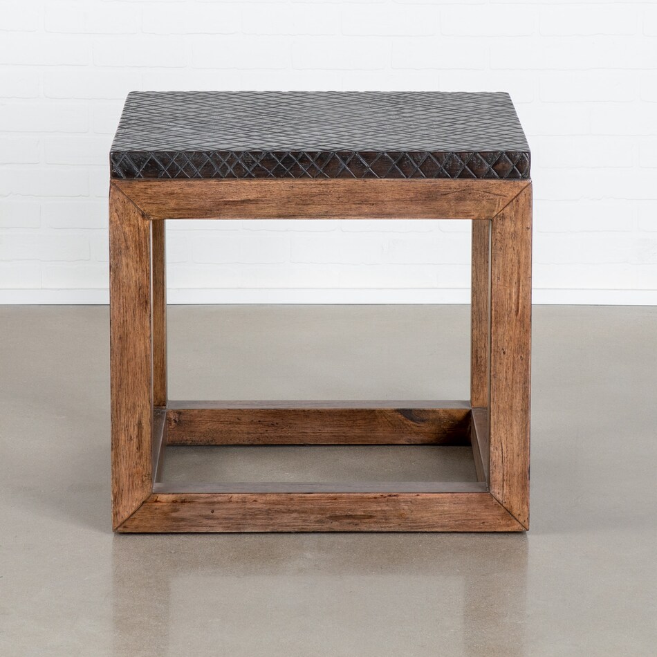 With a simple and straightforward square-shaped silhouette that evokes the weight, heft and heritage of beam construction, the Aiden End Table boldly contrasts a Vintage Natural wood base with a crosshatch texture on the top in the charcoal Furrowed Bark finish.